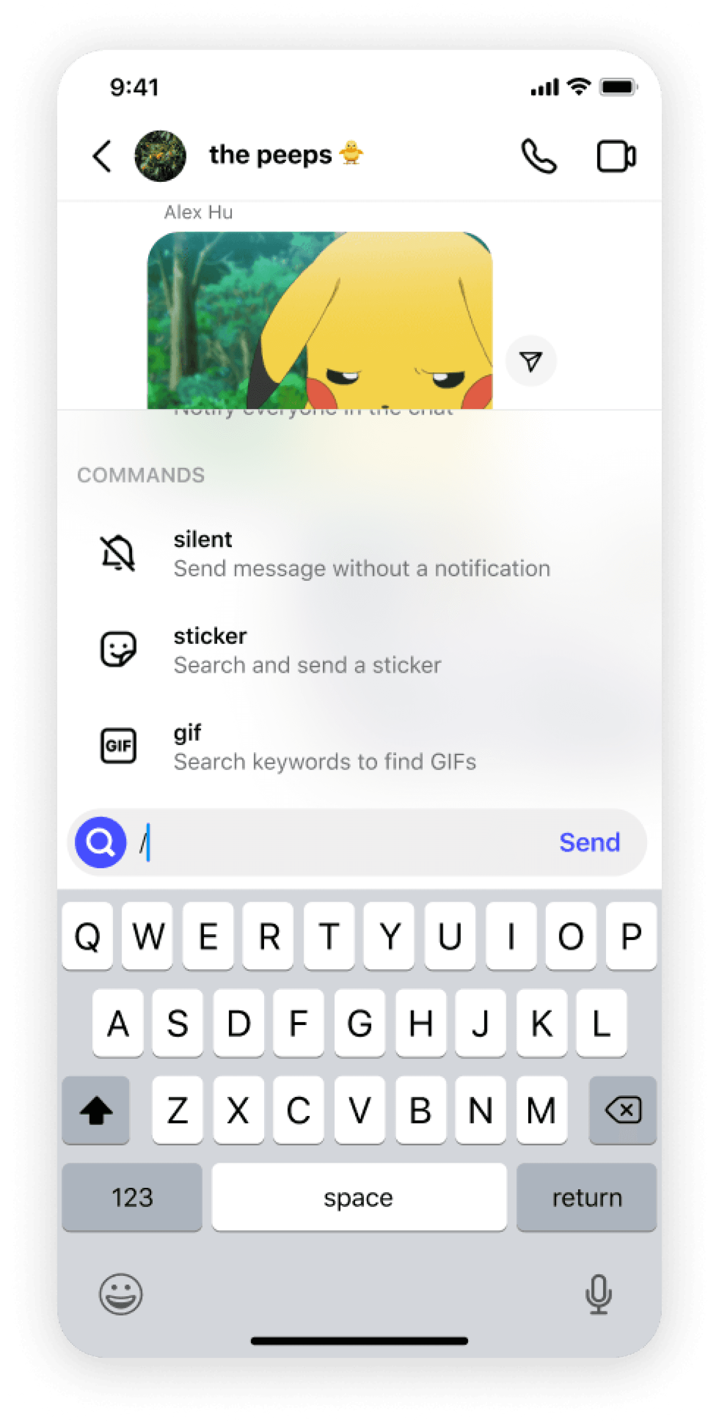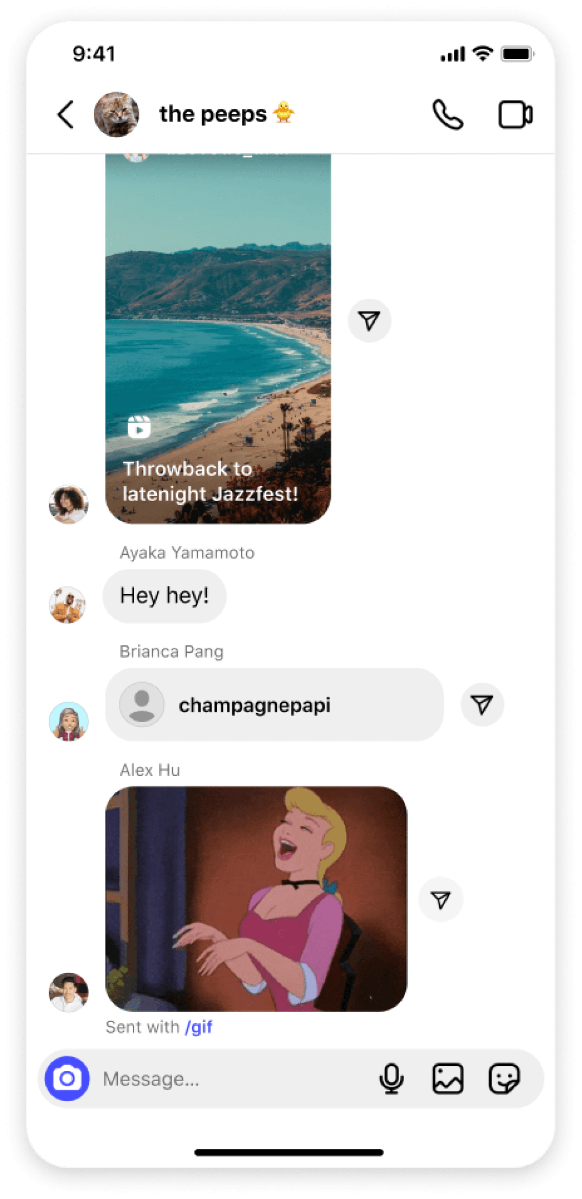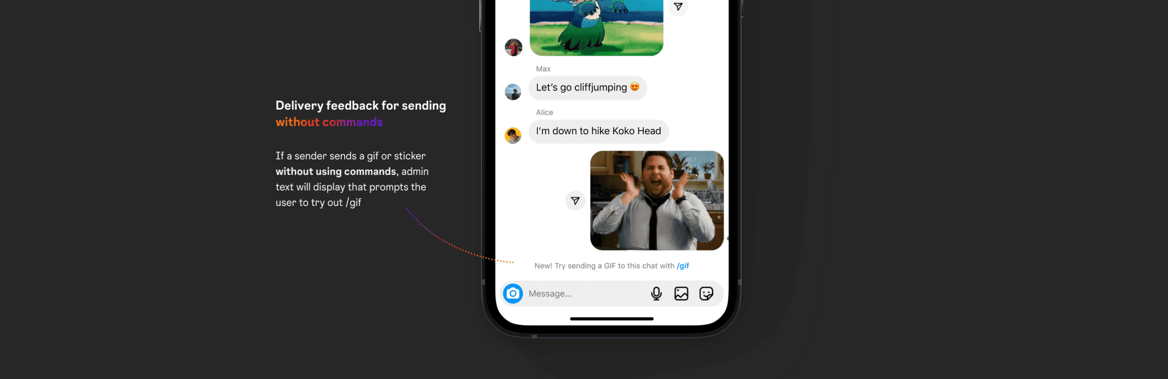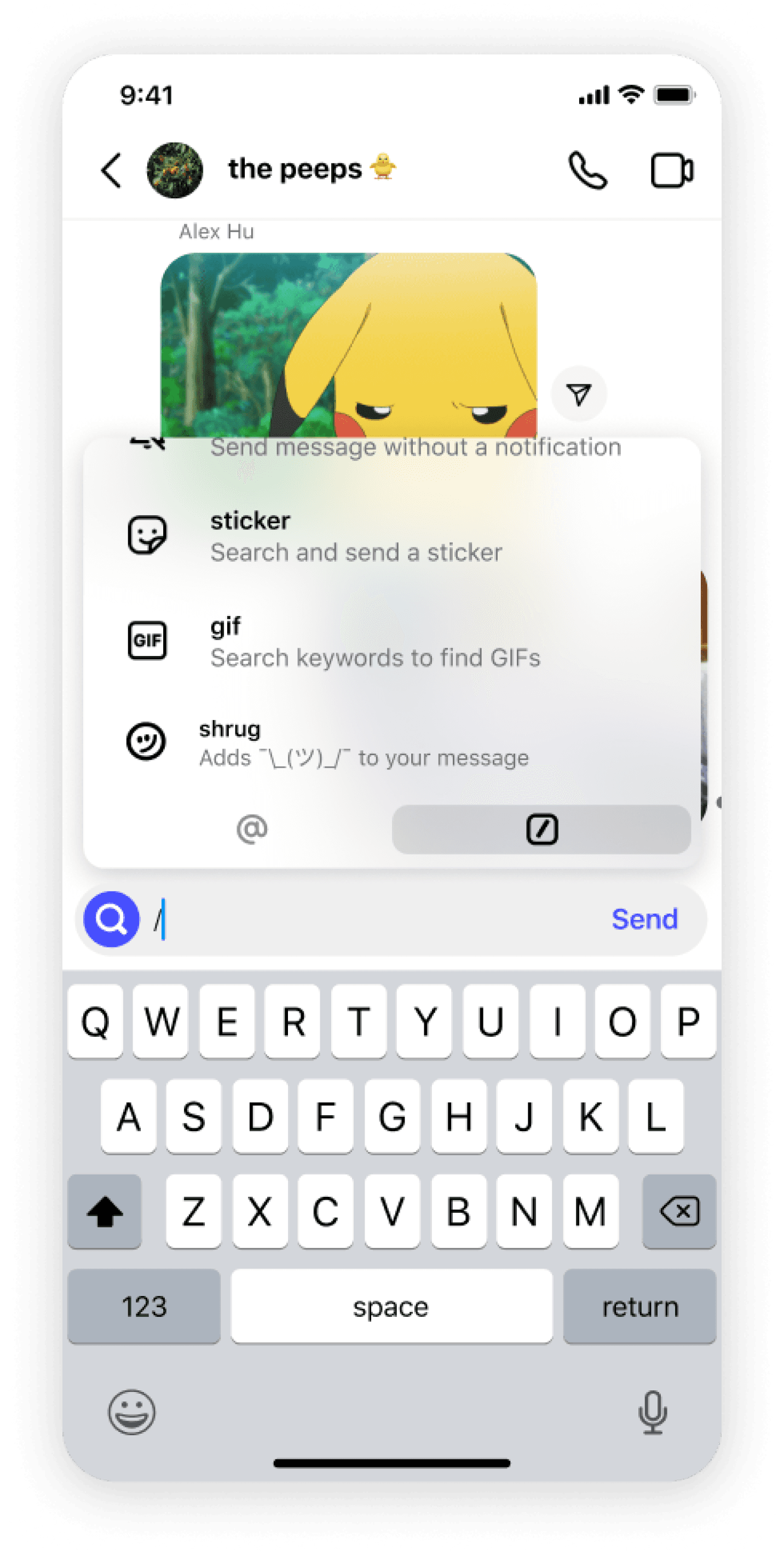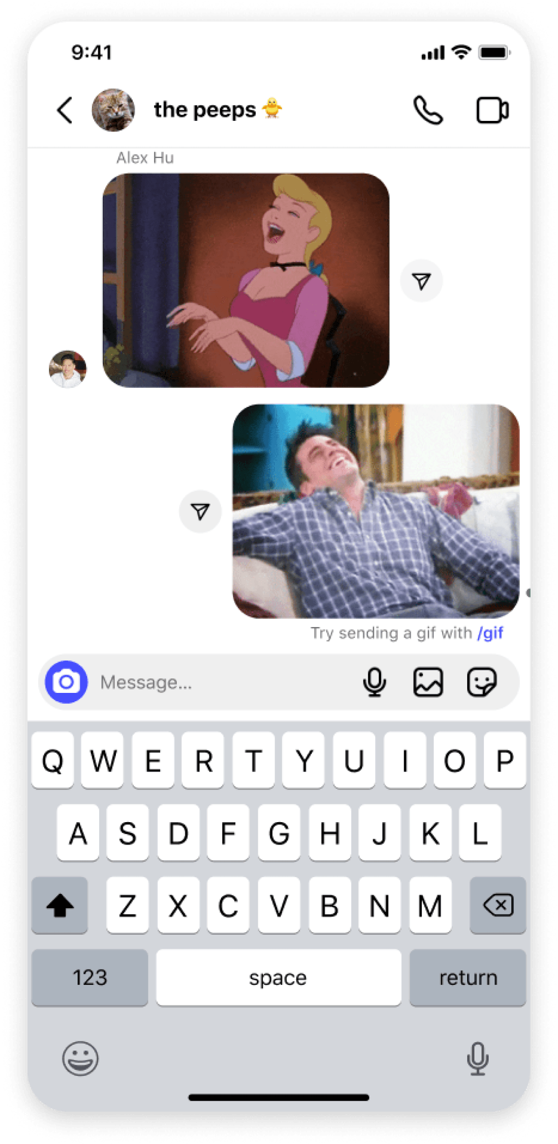 of sending a gif or sticker.