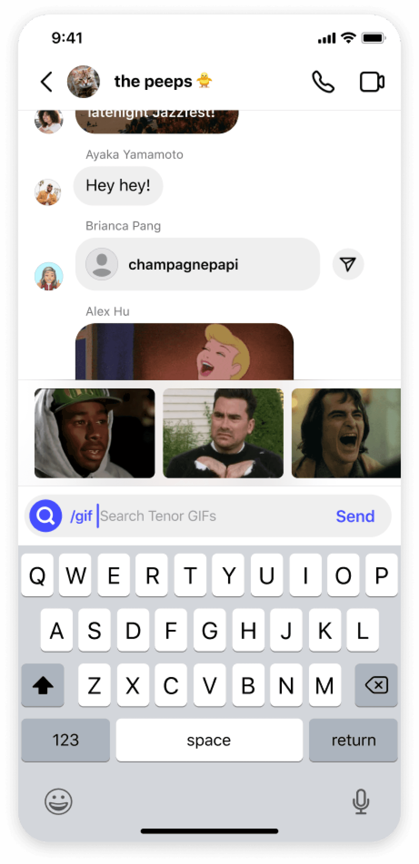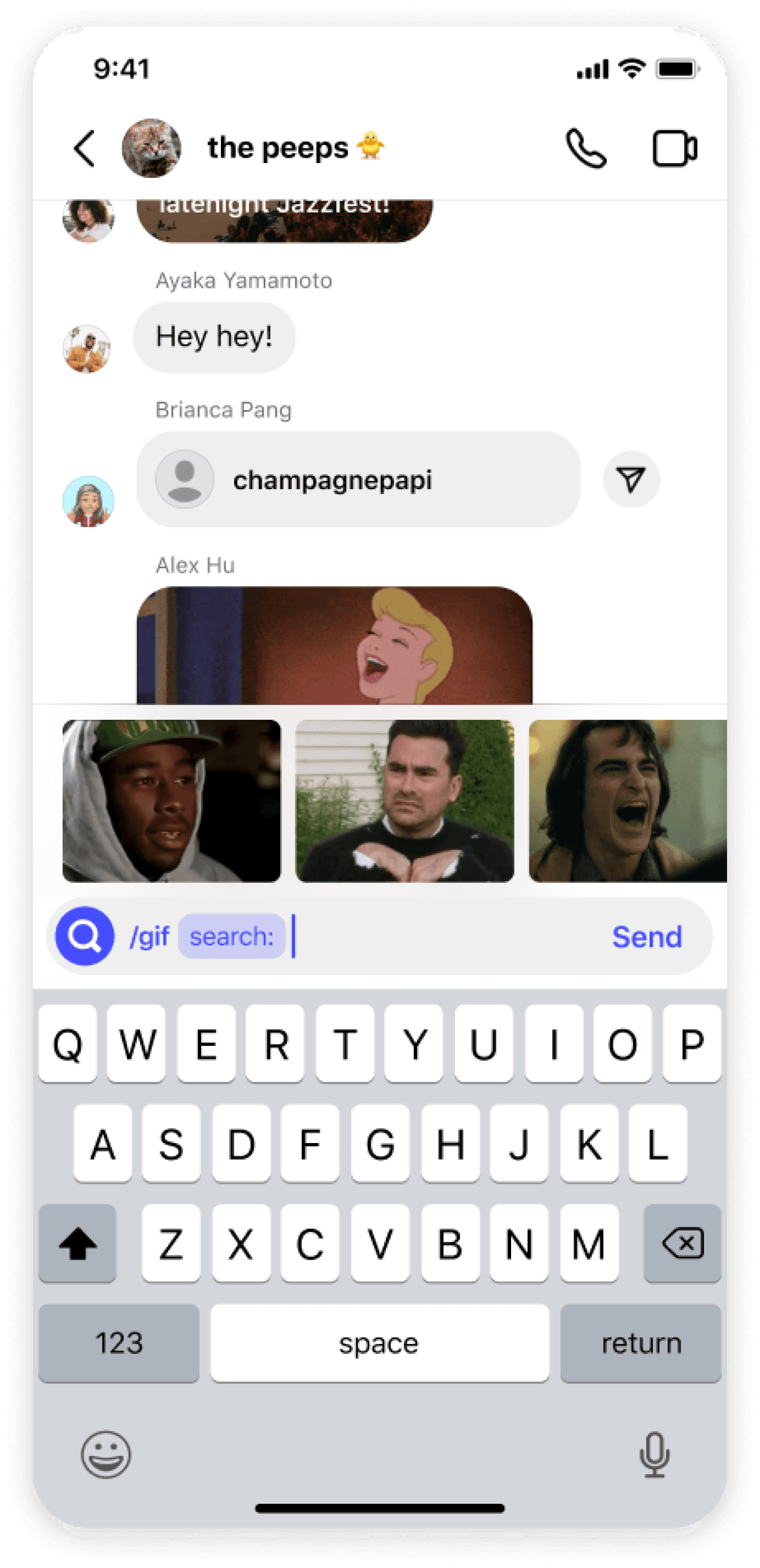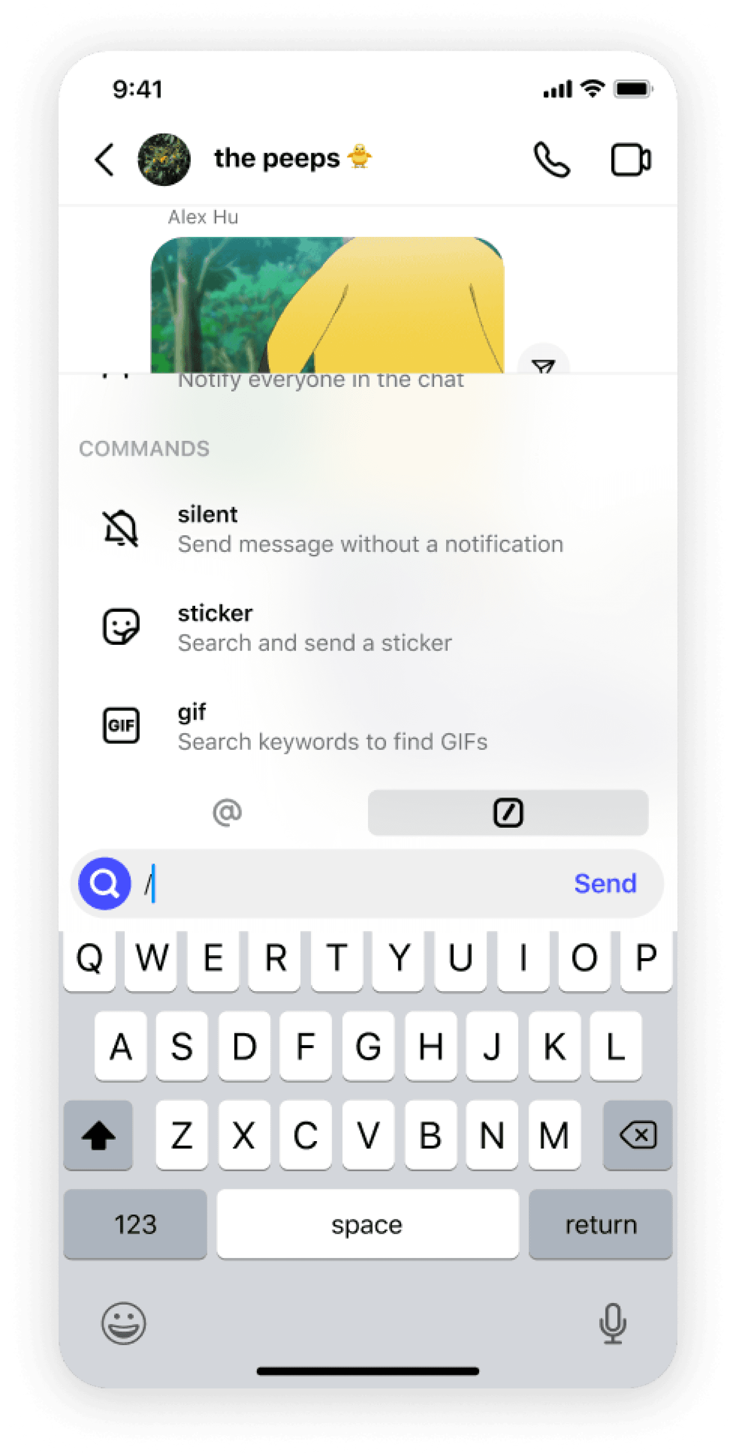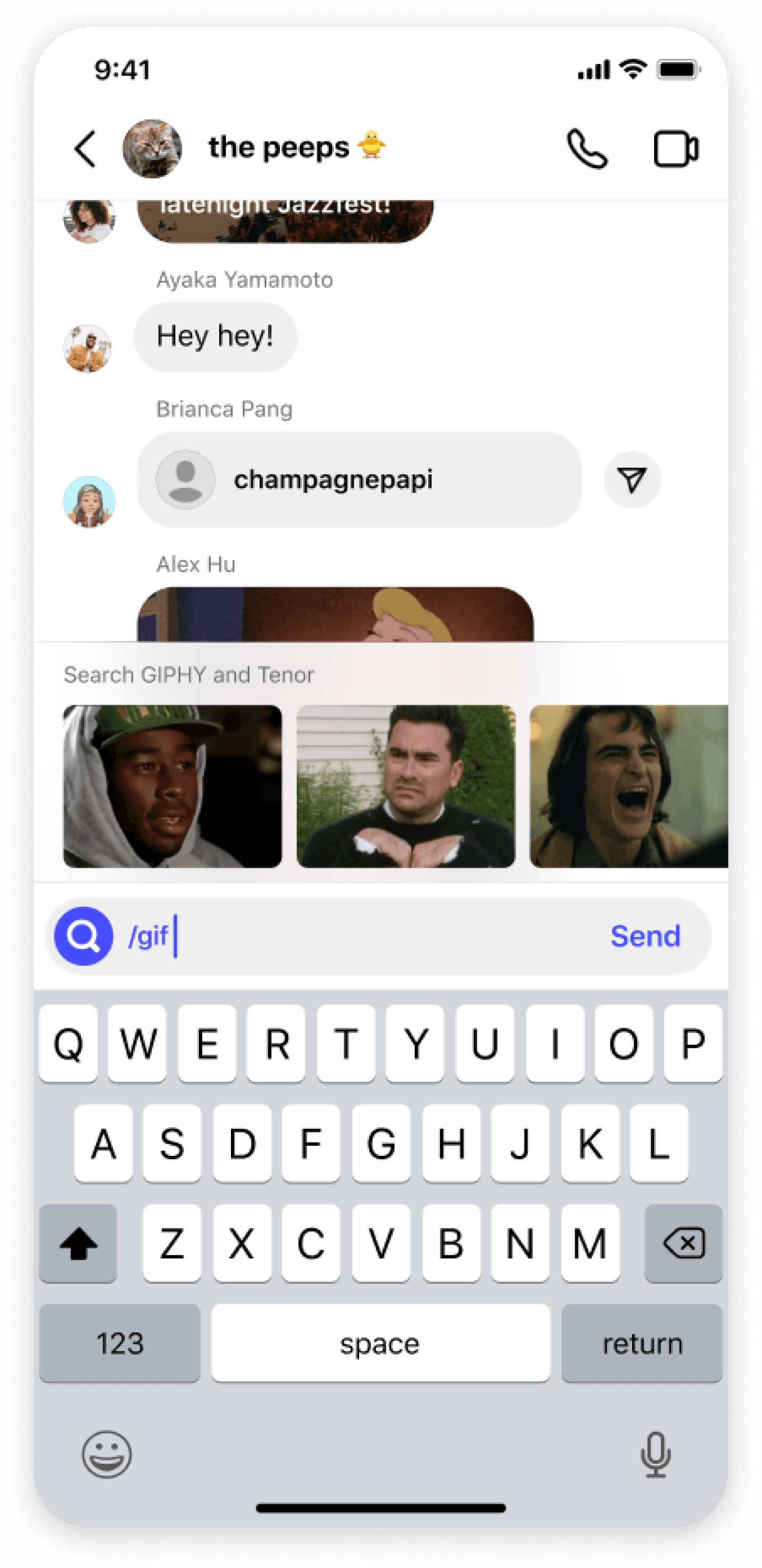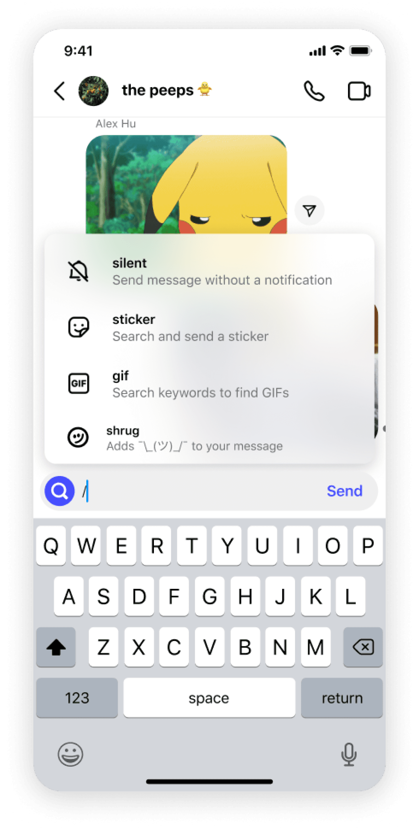 of sending a gif or sticker.